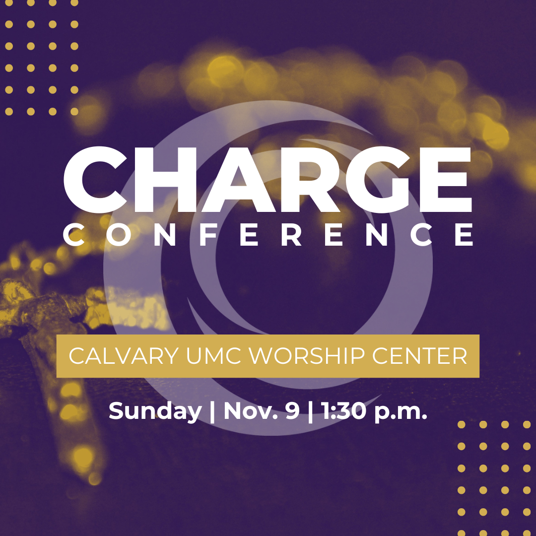 Calvary UMC will hold its annual Charge Conference at 1:30 p.m. on Sunday, November 9 in the Worship Center. Charge Conference is the annual business meeting of our local church where the 2026 church budget will be set, committee members and leaders will be elected, and reports will be received. The meeting will be chaired by Rev. Mike Crawford, our District Superintendent. All are welcome, and all full members of Calvary UMC have the right to vote on all matters. This year’s charge conference will once again be a cluster charge conference where we will host several other area churches, so there will also be opportunities to interact with other Methodists from our area.