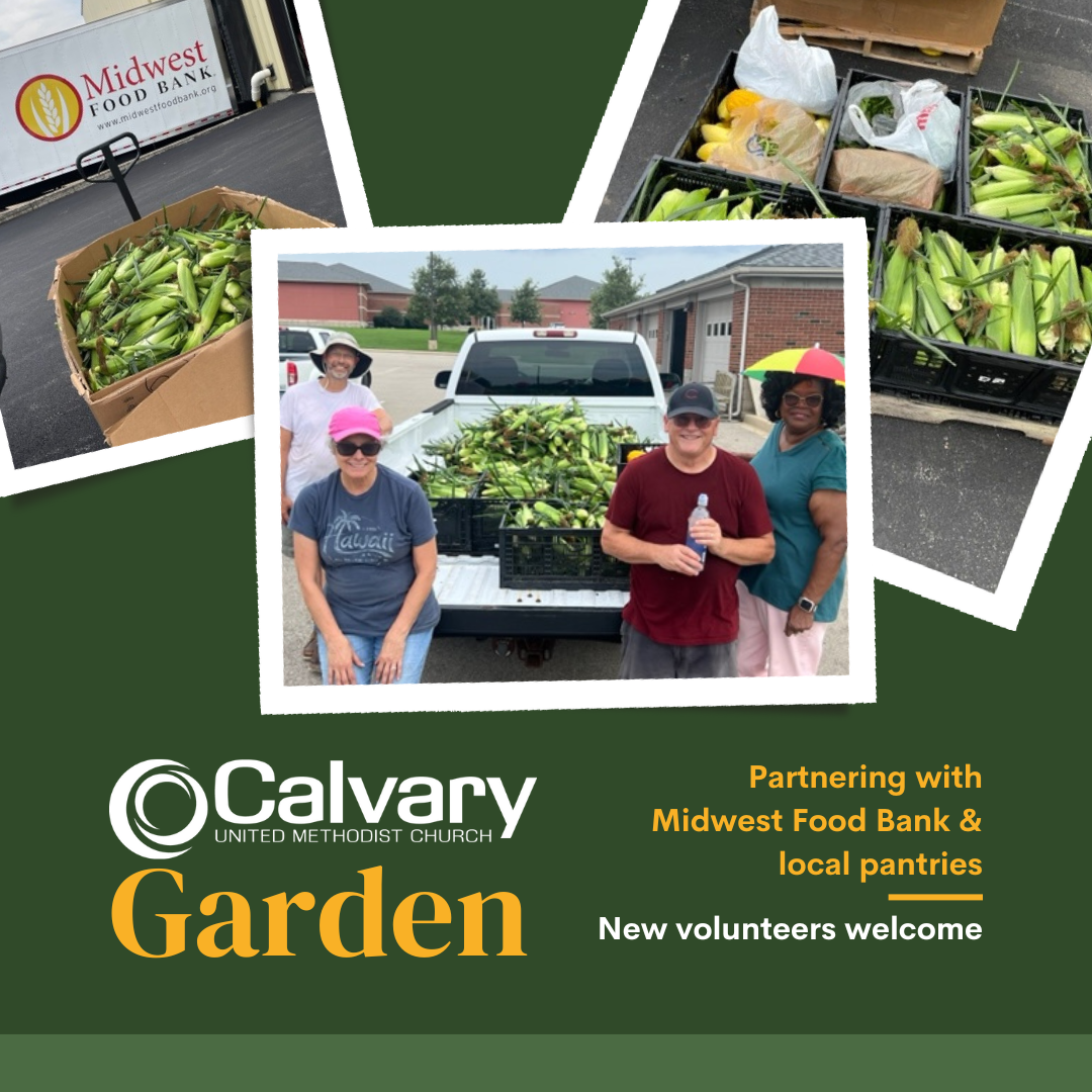 Our Calvary Garden Team with the help of Larry Gamblin has donated 1409 pounds of fresh produce to Midwest Food Bank, and various other food pantries in Bloomington Normal during this 2025 growing season. We have a great team, but never turn away anyone who would like to help. We usually pick and wash vegetables on Saturday mornings, and then deliver later that morning. If you would like to get involved please reach out to the church office and we will add you to our text group.